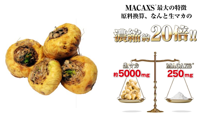 そのマカの濃縮20倍のエネルギーが期待できるのがMACAXS®だといわれています。